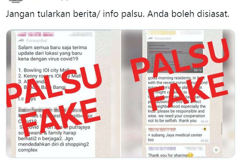 Terdahulu, suruhanjaya komunikasi dan multimedia malaysia (skmm) dan polis diraja malaysia (pdrm) telah memberi amaran kepada netizen tentang penyebaran berita palsu. Ruu berita palsu malaysia kelak mengganjar terpidana dengan hukuman maksimal 10 tahun penjara dan/atau denda rp1,7 miliar. Tapi bagi korang yang baca berita luar, nampaknya berita luar lagi berani untuk menyatakan Hakikatnya, berita palsu adalah masalah global dan ia memerlukan penyelesaian global. Presiden perancis, emmanuel macron misalnya, mengemukakan cadangan. Dokumen palsu yang dibuat seperti ktp, akta kematian, akta kelahiran dan lainnya. Lượt xem 7692029 năm trước. Tapi, akta berita palsu ni tak menjejaskan media luar. Malaysia akan gunakan vaksin astrazeneca untuk usia 60 tahun ke atas. Penyebaran berita palsu koronavirus, pdrm & skmm keluarkan amaran. Detiktravelkamis, 29 apr 2021 03:28 wib. Dikelilingi danau, berwarna pink, ini dia masjid putra di malaysia. Namun, beberapa negara sudah memulakan langkah untuk membendung fenomena itu termasuk malaysia.